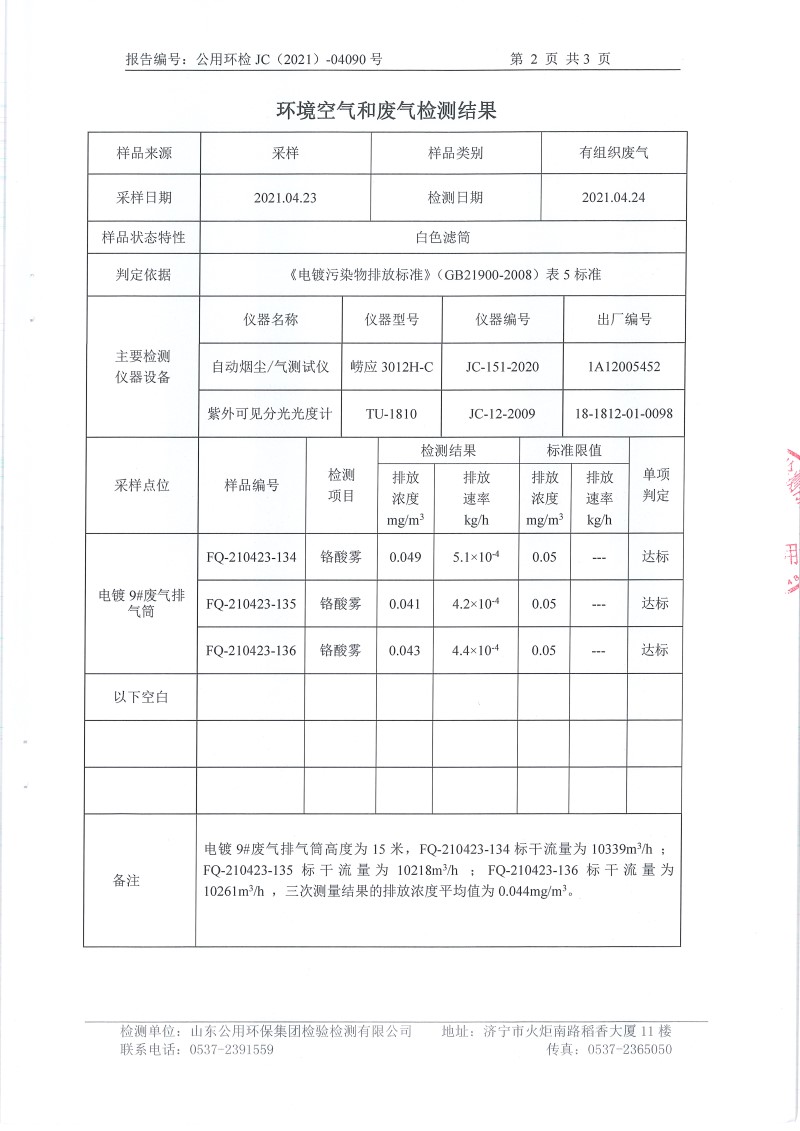 2021年4月9#排氣筒鉻酸霧檢測報告