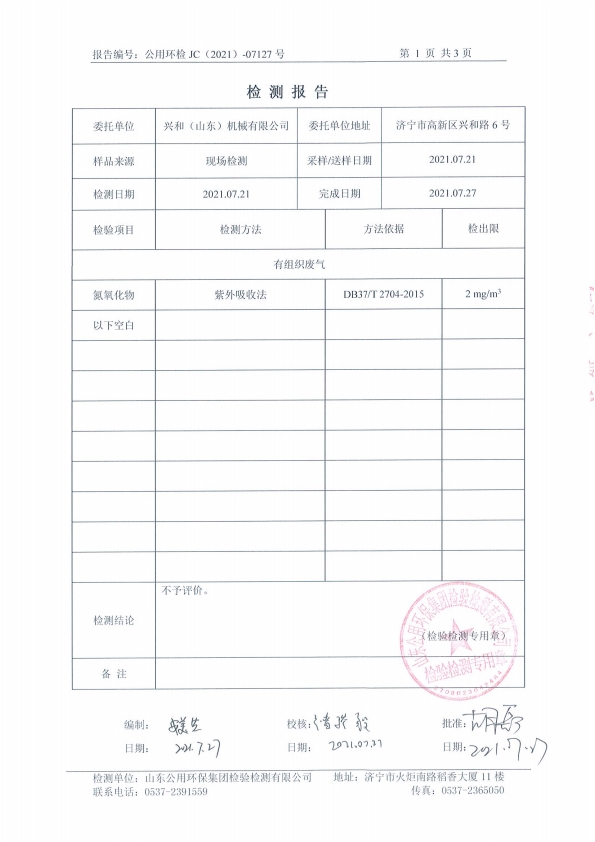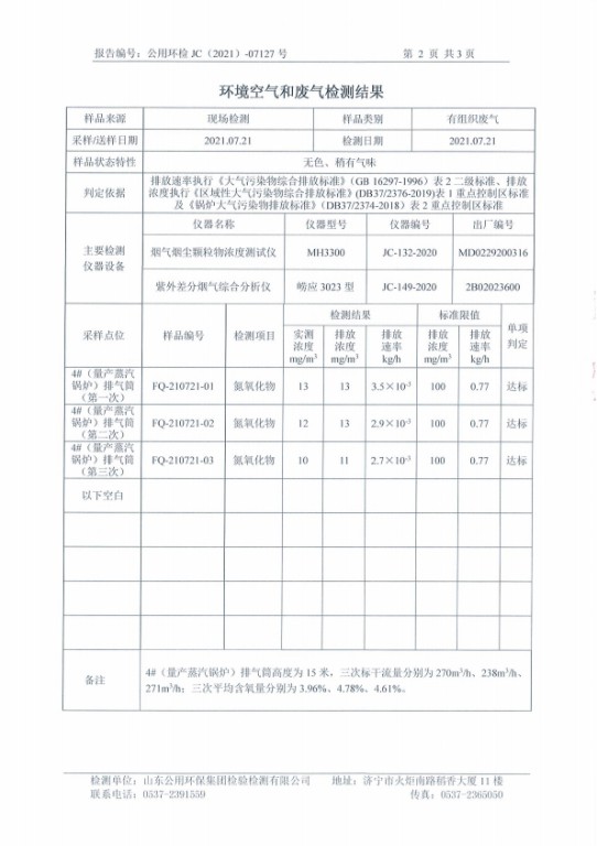 2021年7月蒸汽鍋爐4#排氣筒——氮氧化物檢測(cè)報(bào)告