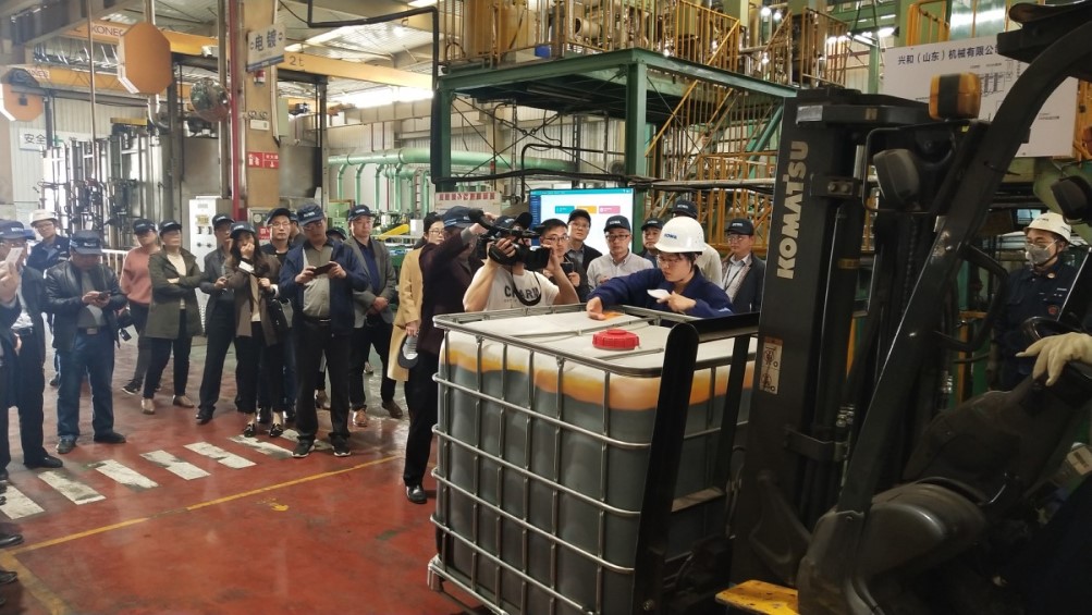2019年3月27日,濟(jì)寧市生態(tài)環(huán)境局主辦的濟(jì)寧市危險(xiǎn)廢物規(guī)范化管理現(xiàn)場(chǎng)會(huì),在我司舉行。來(lái)自全市14縣市區(qū)生態(tài)環(huán)境局分管局長(zhǎng)、科長(zhǎng)及市生態(tài)環(huán)境局領(lǐng)導(dǎo)共計(jì)50余人,參加了本次現(xiàn)場(chǎng)會(huì),F(xiàn)場(chǎng)會(huì)主要針對(duì)危險(xiǎn)廢物規(guī)范化管理、危險(xiǎn)廢物大數(shù)據(jù)信息平臺(tái)應(yīng)用等方面進(jìn)行交流與學(xué)習(xí)。現(xiàn)場(chǎng)會(huì)中,我司伊藤總經(jīng)理致歡迎詞,并對(duì)我司環(huán)保工作進(jìn)行介紹。會(huì)后我司制造部張部長(zhǎng)接收濟(jì)寧電視臺(tái)記者采訪。我司環(huán)保得到與會(huì)生態(tài)環(huán)境局領(lǐng)導(dǎo)的好評(píng)。