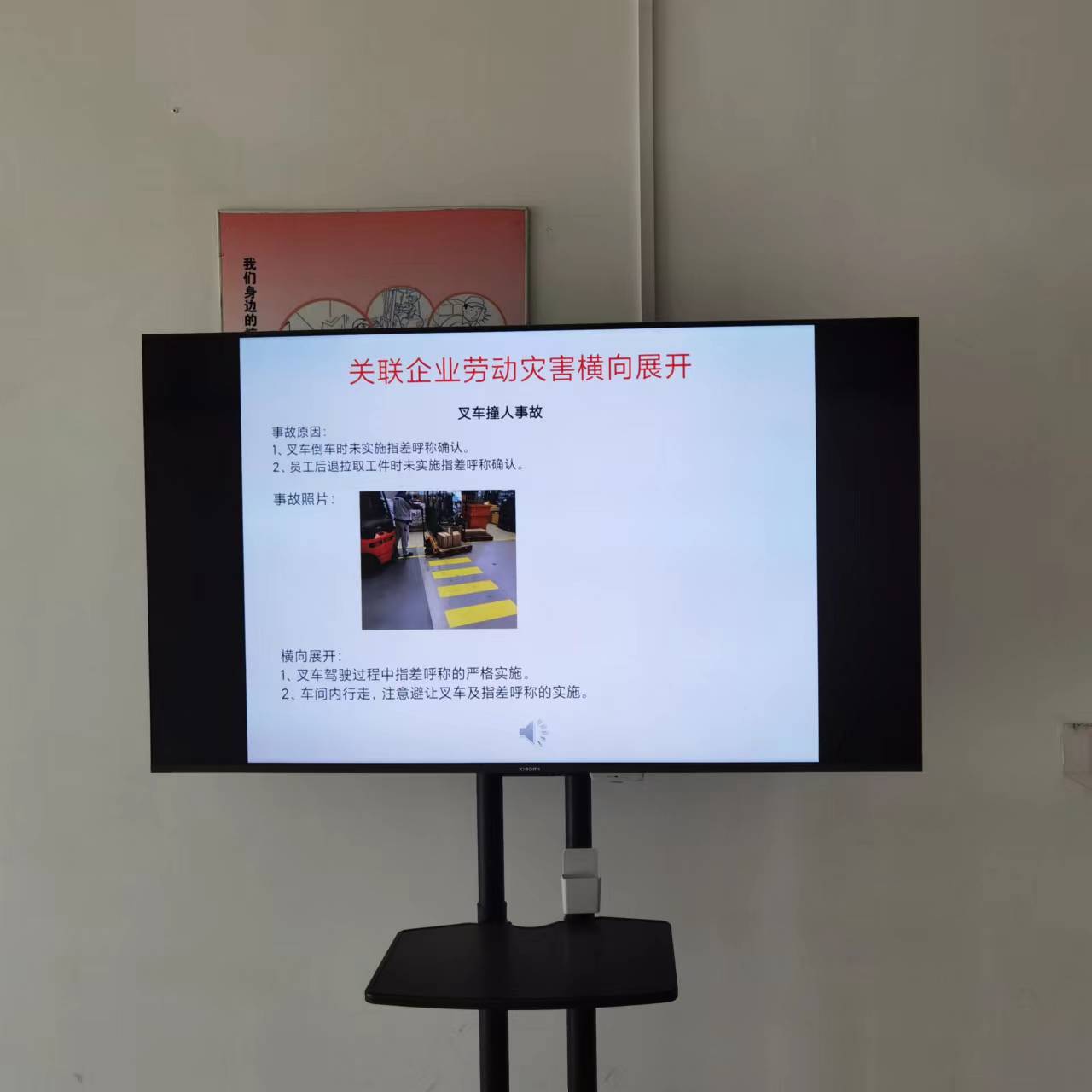 每一個(gè)勞動(dòng)災(zāi)害都不能停留在事故本身上,應(yīng)該運(yùn)用發(fā)散式思維找出事故的原因,真實(shí)反映存在的問題。通過小松及關(guān)聯(lián)企業(yè)勞動(dòng)災(zāi)害事故案例及安全警示視頻播放,讓員工從中受到深刻教育,得出有益的啟迪,總結(jié)經(jīng)驗(yàn)和教訓(xùn),從而有效的避免事故的再次發(fā)生。以視覺沖擊提高員工安全意識(shí)。